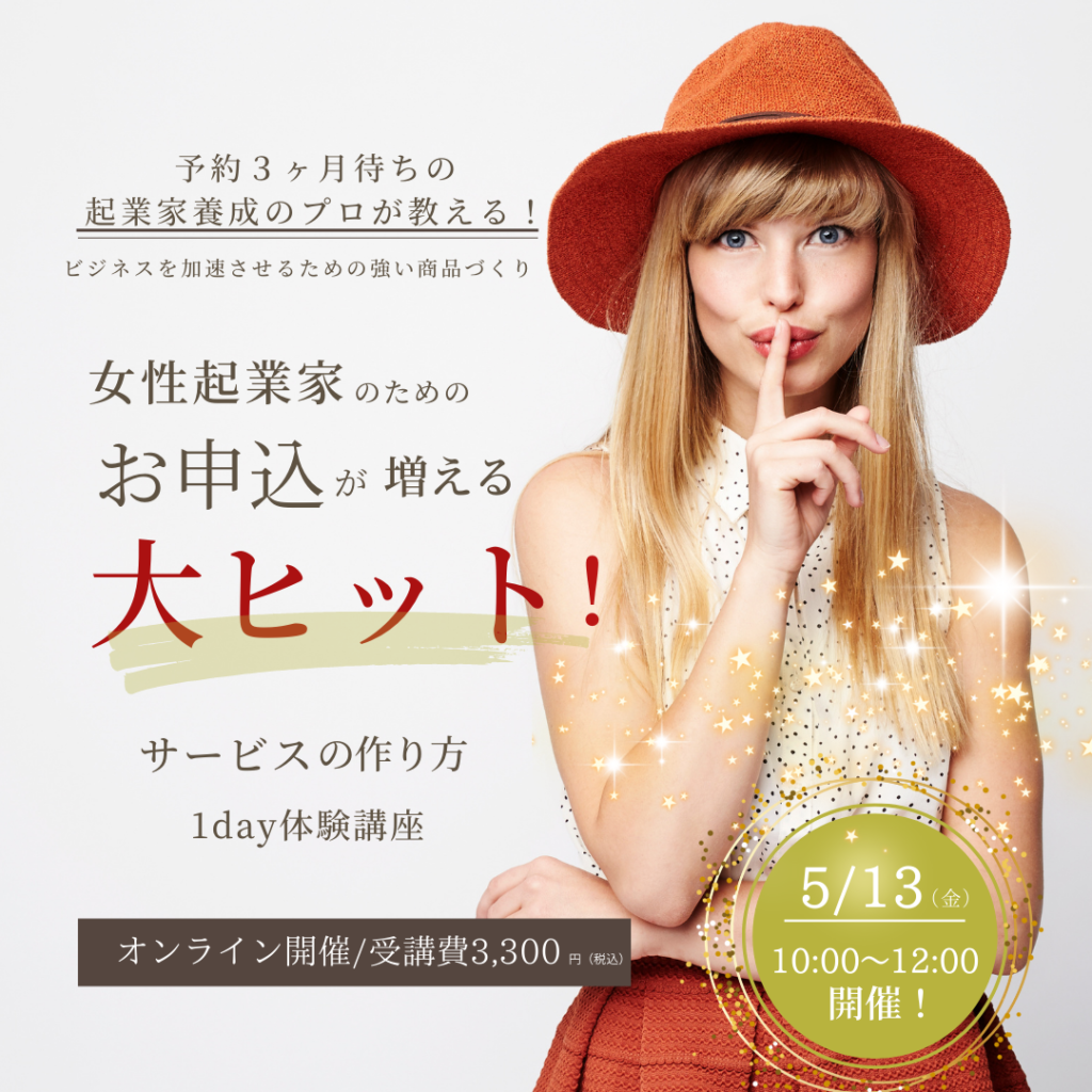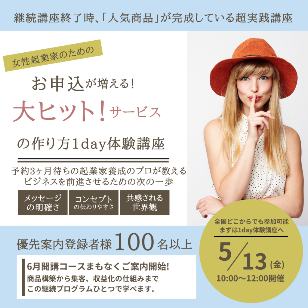 メルマガ読者様優先受付4月25日(月)10:00〜募集開始!『大ヒットサービスの作り方』1day体験講座